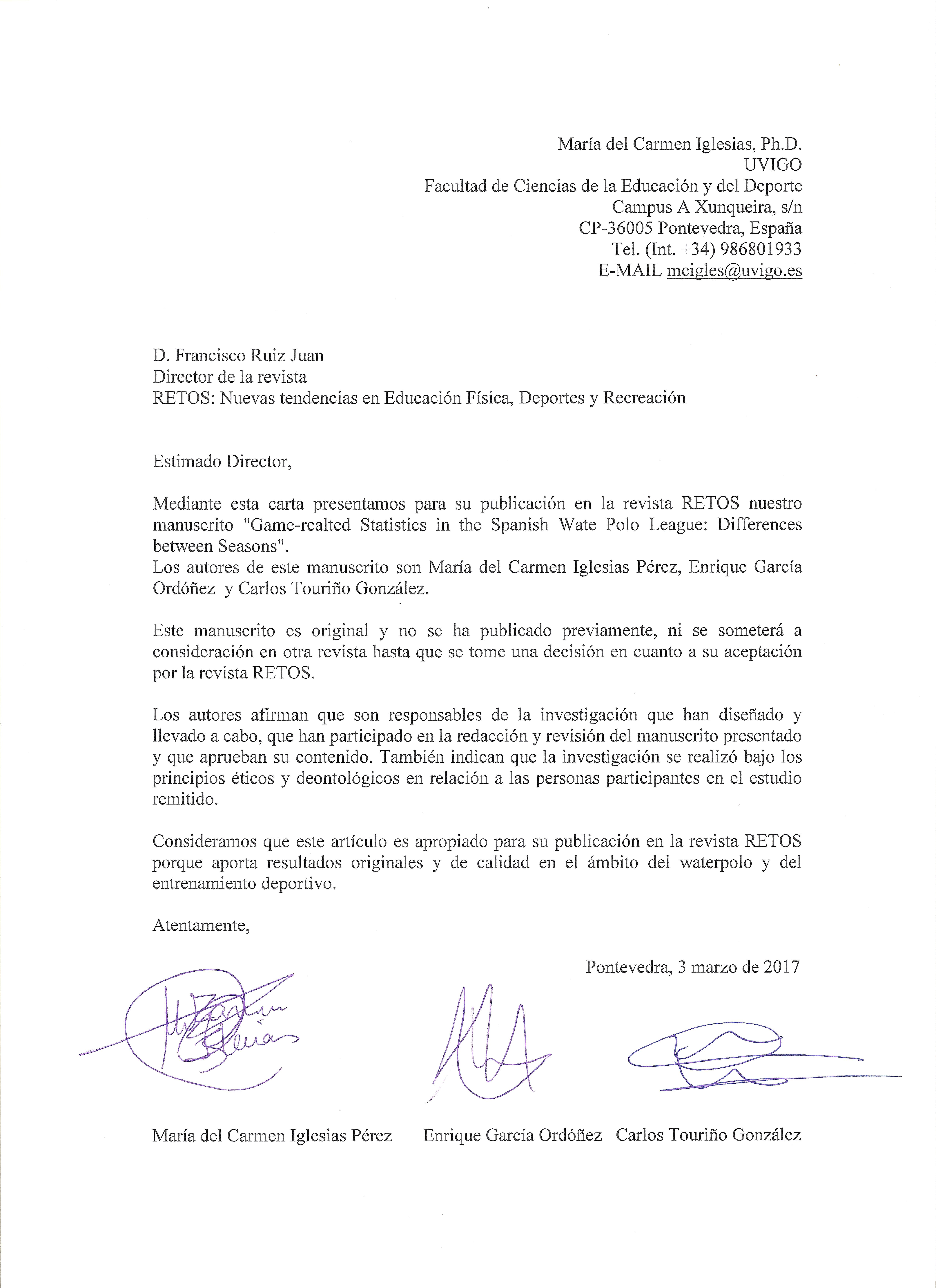 Iglesias M.C., García E., & Touriño C. (2016). Keys to Success in High Level Water Polo Teams. International Journal of Performance Analysis in Sport, 16(3), 995-1006.